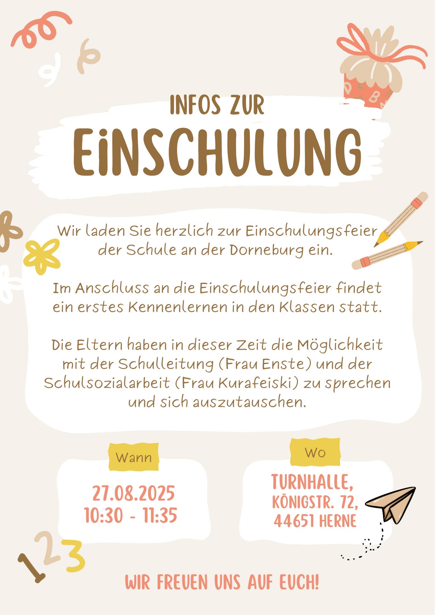 Wir laden Sie herzlich zur Einschulungsfeier der Schule an der Dorneburg ein!